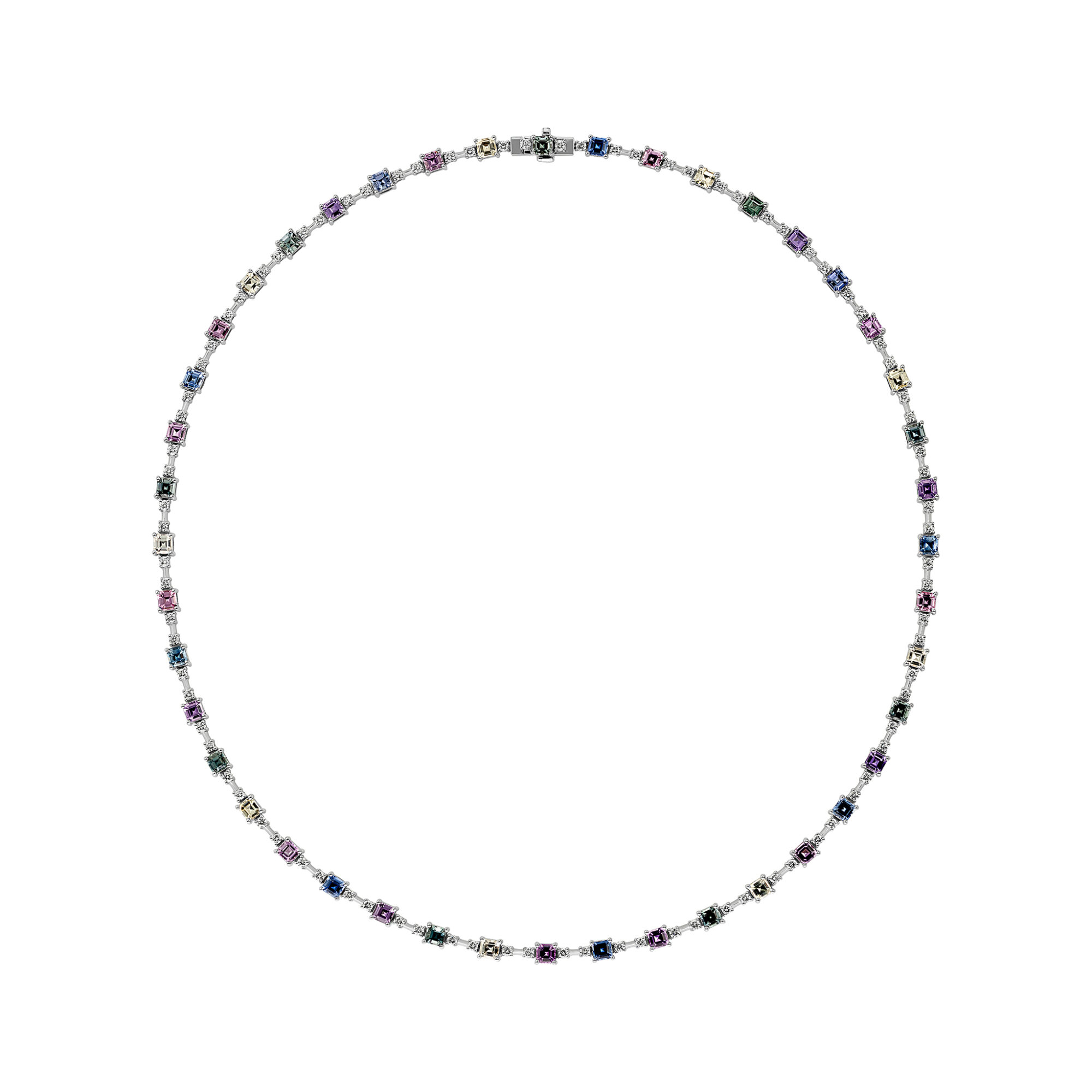 Įsivaizduokite spalvų sprogimą ir šviesos žaismą viename nepakartojamame juvelyrikos kūrinyje. Kiekvienas sodraus atspalvio safyras – tai prabangos ir gyvybės simbolis, kurį puošia neblėstantis deimantų spindesys. Šis koljė – ne tik aksesuaras, bet ir išraiška, kuri kalba už jus be žodžių.